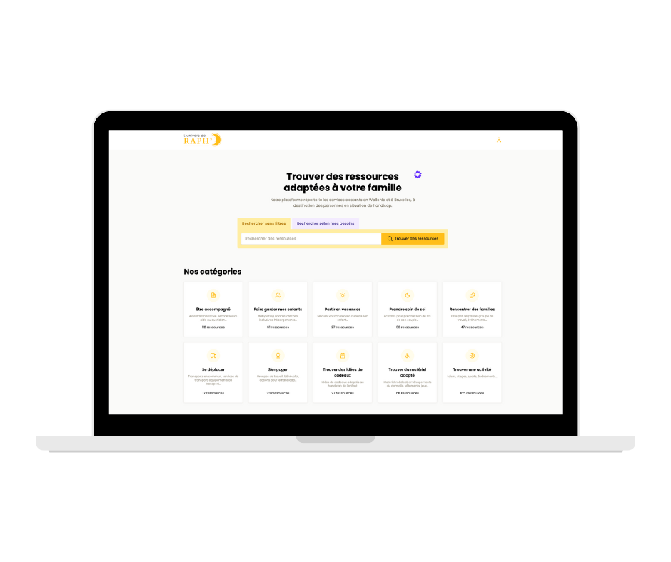 En collaboration avec une cinquantaine de familles, je crée la plateforme MyRAPH' qui répertorie les services existants en Wallonie et à Bruxelles. En créant du lien entre tous les acteurs du handicap (parents, services, professionnels de la santé...) les familles ont ainsi accès à des informations centralisées, complètes et actualisées par l'ASBL.